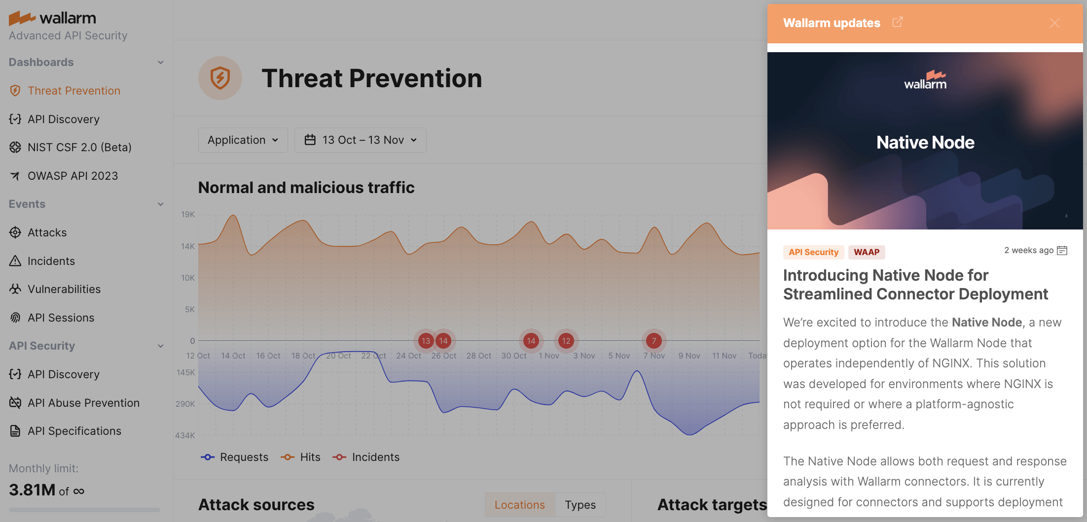 The updates section in the Wallarm Console