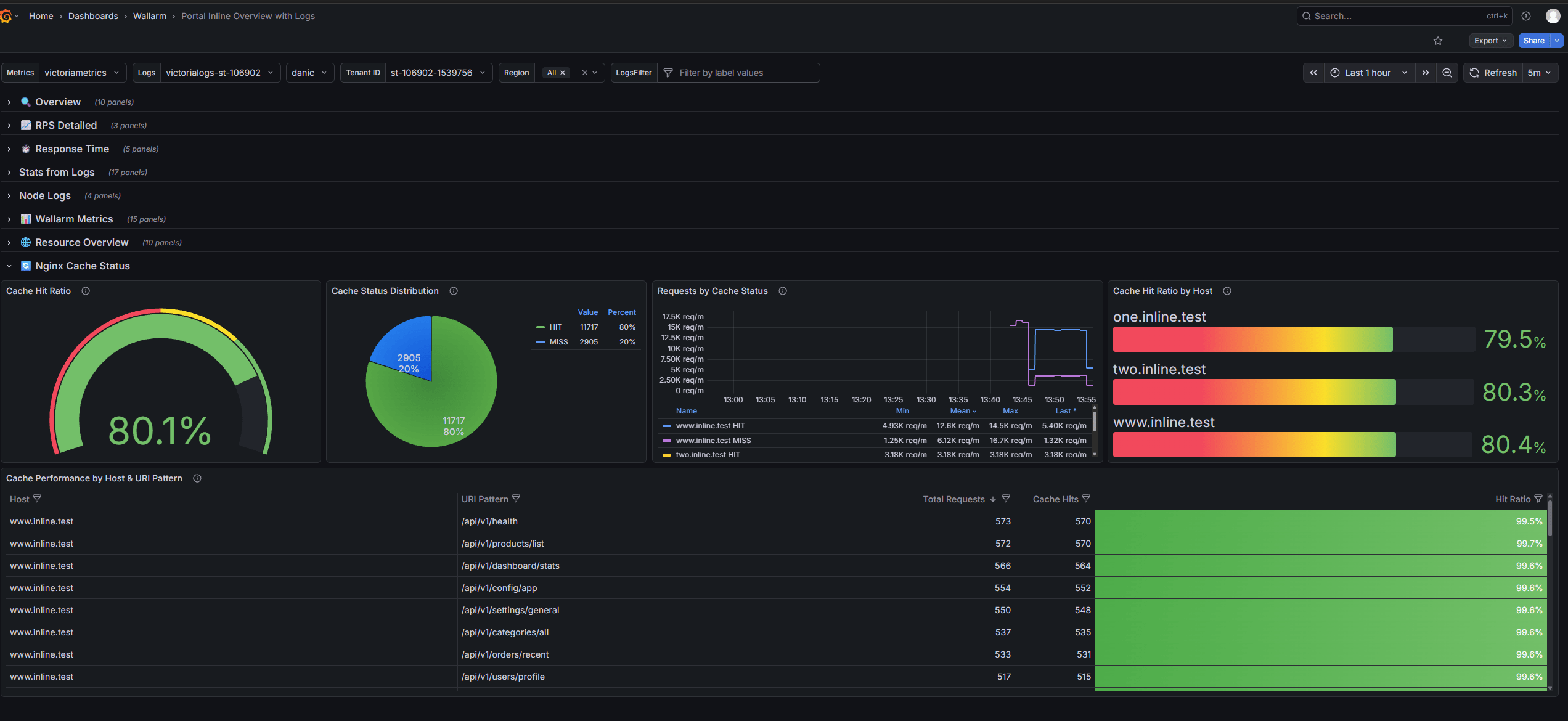 • Cache Performance by Host & URI Pattern - Shows cache performance for specific hosts and endpoints.